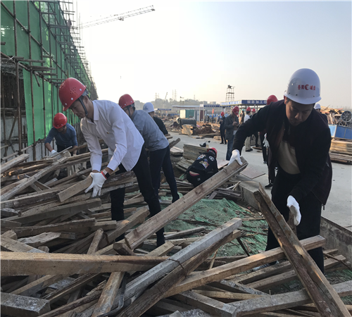 當天,二支部全體黨員前往馬壕污水處理廠擴容工程現場參觀學習。項目負責人詳細的介紹了項目基本情況,并帶領全體黨員在現場開展治理揚塵、搬運模板、構件等志愿服務活動。黨員們佩戴黨徽,頭戴安全帽,以一名項目建設者的身份積極參加馬壕污水處理廠現場建設,以實際行動支持項目建設,助推重點工程進度。